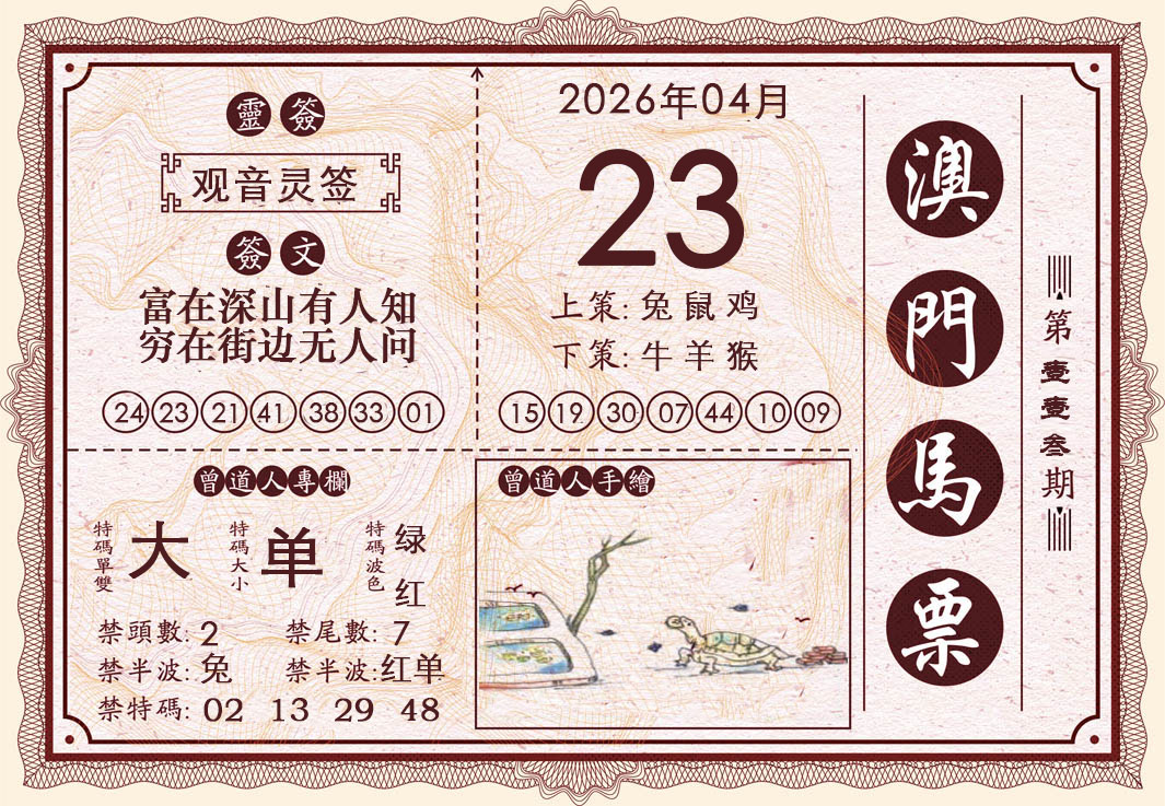 | 111期 | 鸡蛇牛兔 | 开:?00 |